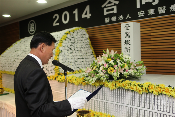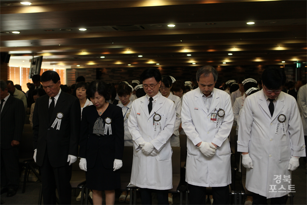 °­º¸¿µ ÀÌ»çÀåÀº Ãßµµ»ç¸¦ ÅëÇØ "°íÀÎÀÇ ³ÌÀ» Ã߸ðÇϰí À¯°¡Á·À» À§·ÎÇÏ´Â ÇÑÆí, ´õ¿í Á¤¼ºÀ» ´ÙÇÏ´Â Áø·á¿Í °£È£¸¦ ÇàÇϸç, ÇÑ»ç¶÷ÀÇ »ý¸íµµ °í±ÍÇÏ°Ô À̾ ¼ö ÀÖµµ·Ï ¸ðµç ÀÓÁ÷¿øµéÀº ÃÖ¼±À» ´ÙÇÒ °Í"À» ´ÙÁüÇß´Ù.