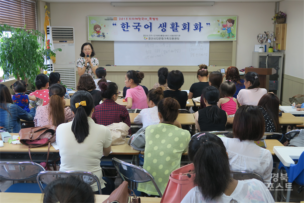 °æ»ê½Ã(½ÃÀå ÃÖ¿µÁ¶)´Â °æ»ê½Ã°Ç°°¡Á¤Áö¿ø․´Ù¹®È°¡Á·Áö¿ø¼¾ÅÍ ÅëÇÕ¼ºñ½º ½Ã¹ü¿î¿µ±â°ü(¼¾ÅÍÀå Á¤À¯Èñ)¿¡¼ 17, 18ÀÏ ´Ù¹®È°¡Á·À» À§ÇÑ ÇϹݱâ Çѱ¹¾î ±³À°À» °³°Çß´Ù. À̹ø ÇϹݱ⠱³À°Àº »ó¹Ý±â¿¡ ½Ç½ÃµÈ ÁýÇÕ Çѱ¹¾î ±³À°°ú ´Þ¸® ¡°µ¿ÈÃ¥À¸·Î ¹è¿ì´Â Çѱ¹¾î¡±,¡°Çѱ¹¾î »ýȰȸȡ±,¡°Çѱ¹¾î´É·Â½ÃÇè(ÅäÇÈ) ´ëºñ¹Ý¡±, ¡°±âÃÊ Çѱ¹¾î 1´Ü°è¡± µîÀ¸·Î ³ª´¶ Ưº°¹ÝÀ¸·Î Æí¼ºµÇ¾úÀ¸¸ç 12¿ùÃʱîÁö ÁøÇàµÈ´Ù. ¡°µ¿ÈÃ¥À¸·Î ¹è¿ì´Â Çѱ¹¾î¡±´Â µ¿ÈÃ¥À» Ȱ¿ëÇÑ ¿¬±Ø, ÀÏ»ó»ýȰÀ» Ȱ¿ëÇÑ »óȲ±Ø, Ç÷¡½¬ Ä«µå µîÀ» Ȱ¿ëÇÏ¿© Çѱ¹¾î¸¦ º¸´Ù ½±°í, ½Ç»ýȰ¿¡ Ȱ¿ë ÇÒ ¼ö ÀÖµµ·Ï ±âȹÇÏ¿´´Ù. ¶ÇÇÑ Çѱ¹¾î´É·Â½ÃÇè ´ëºñ¹ÝÀº °áÈ¥ÀÌÁÖ¿©¼ºµéÀÇ Çѱ¹¾î ´É·ÂÀÇ °´°ü¼ºÀ» È®º¸ÇÏ¿© Àڽۨ Çâ»ó ¹× Ãë¾÷ ±âȸ È®´ë¸¦ Áö¿øÇϰíÀÚ ¸¶·ÃµÇ¾ú´Ù. À̹ø ÇÁ·Î±×·¥ Âü¿©ÇÑ ÆÊÈ«¸°(29¼¼)¾¾´Â ¡®µ¿ÈÃ¥À» Ȱ¿ëÇÑ Çѱ¹¾î¸¦ ¹è¿ö ´Ù¾çÇÑ Çѱ¹¾î Ç¥Çöµµ ´Ã¸®°í, Àڳ࿡°Ô ¼¾ÅÍ¿¡¼ ¹è¿î ³»¿ëÀ» °¡¸£ÃÄÁÖ°í ½Í´Ù.¡¯°í ¸»Çß´Ù. ÇÑÆí °æ»ê½Ã°Ç°¡․´Ù°¡¼¾ÅÍ ÅëÇÕ¼ºñ½º ½Ã¹ü¿î¿µ±â°üÀº Áö¸®Àû ¿©°ÇÀ¸·Î ¼¾Å͸¦ ÀÌ¿ëÇϱ⠾î·Á¿î ´Ù¹®È°¡Á·À» À§ÇØ Áø·®º¹Áöȸ°ü°ú ÀÚÀθéÇнÀ°ü¿¡µµ Çѱ¹¾î ±³À°¹ÝÀ» °³¼³ÇØ ¿ø°Å¸® ´ë»óÀÚµéÀÇ Çѱ¹¾î ¹× ±³¾ç±³À° Âü¿©¸¦ Áö¿øÇϰí ÀÖ´Ù.