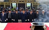 ±¤º¹ÀýÀ» ¾ÕµÐ 7ÀÏ ±è°ü¿ë °æ»óºÏµµÁö»ç°¡ °æÁÖ¿¡ ÀÖ´Â ¡®ÅëÀÏÀü¡¯À» ã¾Æ °ø½Ä Âü¹èÇß´Ù. À̳¯ Âü¹è¿¡´Â ÃÖ¾ç½Ä °æÁÖ½ÃÀå, µµÀÇ¿ø, °æÁÖ½ÃÀÇȸÀÇÀåÀº ¹°·Ð, µµ...