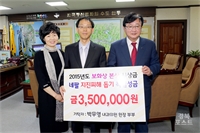 2015³âµµ Á¦58ȸ º¸È»ó º»»ó ¼ö»óÀÚ ¹Ú¹«¿µ ¾¾°¡ ½Ã»ó±ÝÀ¸·Î ¹ÞÀº 350¸¸¿øÀ» ³×ÆÈ ÁöÁøÇÇÇØÁö¿ª µ½±â ¼º±ÝÀ¸·Î ÁöÁ¤ ±âŹÇß´Ù.Áö³´Þ 25ÀÏ ±¹°¡ÀûÀÎ Àç³...